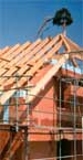 Fertiger Dachstuhl - Im Dachbereich ist genug Platz für zusätzlichen Wohnraum. In den Schrägen kann Platz für Stauräume gelassen werden. Egal ob Alt- oder Neubau, wir stellen Ihnen zuverlässig, schnell und fachgerecht den Dachstuhl auf Ihr Haus. | Der Holzrahmenbau hat sich in den letzten Jahren immer mehr durchgesetzt. Kein Wunder, denn Holz ist schließlich der billigste Baustoff und Sie sparen viel Geld gegenüber massiven Bauten. Eine Bodenplatte oder Stützfundamente genügen und der Aufbau | der Holzständerwände kann beginnen. Innerhalb kürzester Zeit ist das Wohnhaus bezugsfertig. Die Fassade kann beliebig gestaltet werden und wenn die üblichen Pflegearbeiten am Haus eingehalten werden, hat man was für's Leben. |