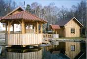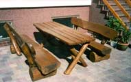 Rustikale Sitzgruppe aus Eiche von | Pavillon 8-eckig, Übergang mit Holzbrücke sowie |